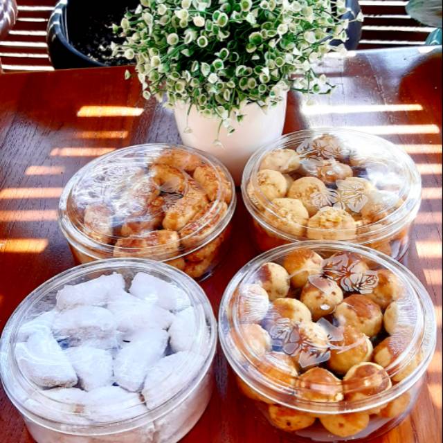 Sedia kue lebaran: nastar, putri salju, lidah kucing, castengel, kue jagung, dan kue kacang.