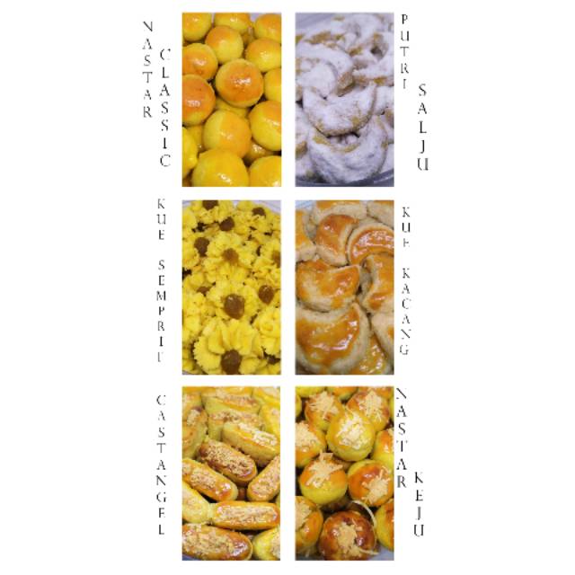 Disini ada 6 foto atau 6 macam kue lebaran, bisa pilih. Kami jual per paket dan per toples ya