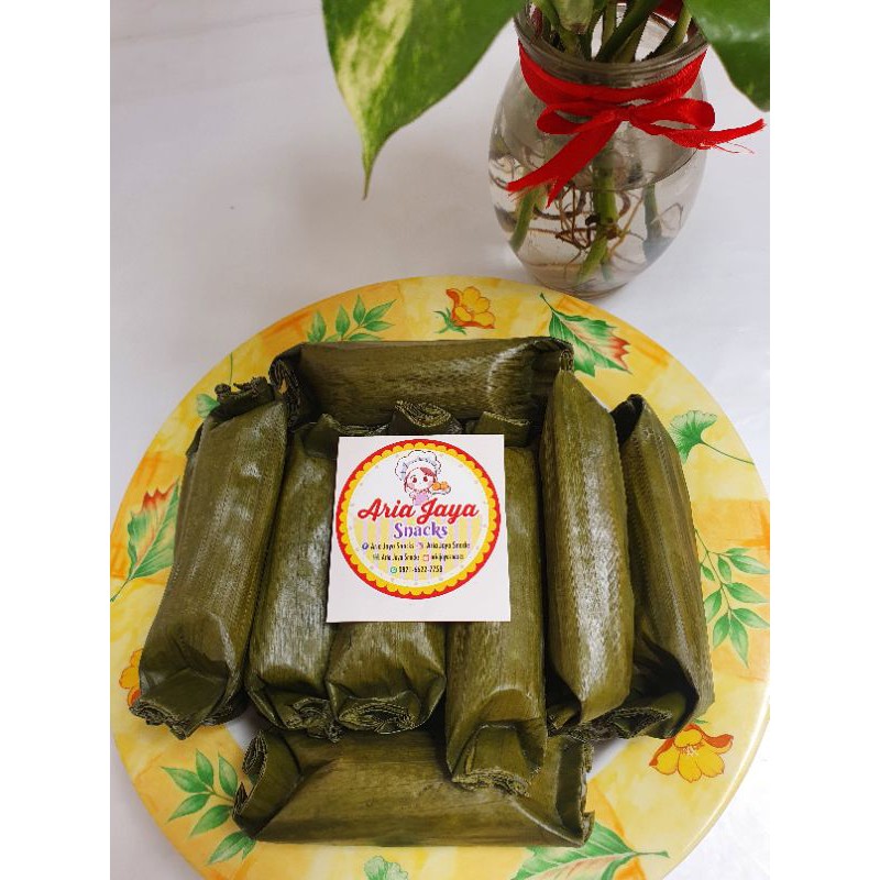 Bahan utama : tepung dan pisang. Dibungkus daun pisang lalu dikukus.