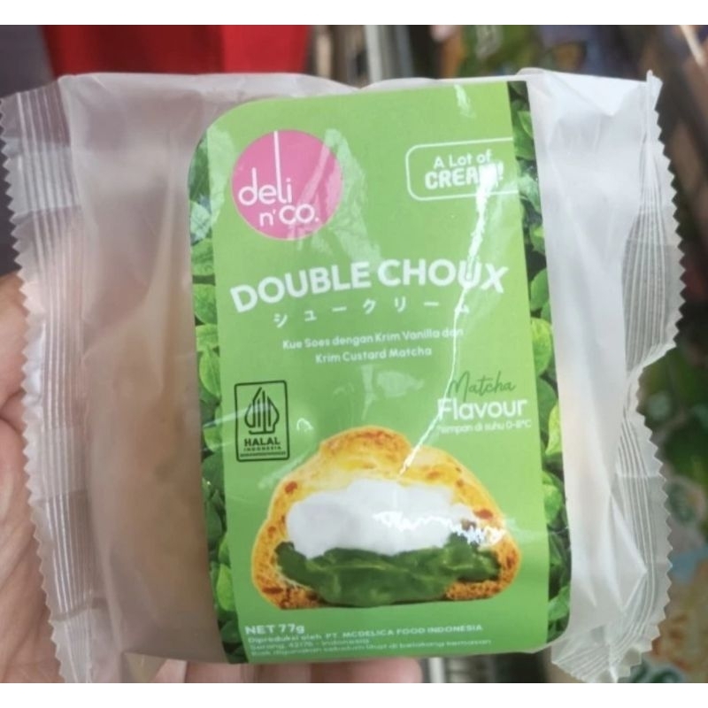 Kue soes dengan krim vanilla dan krim custard matcha.