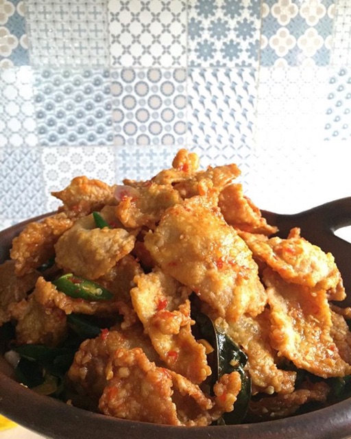Kulit ayam yang dimasak krispi dengan pilihan rasa balado pedas dan original