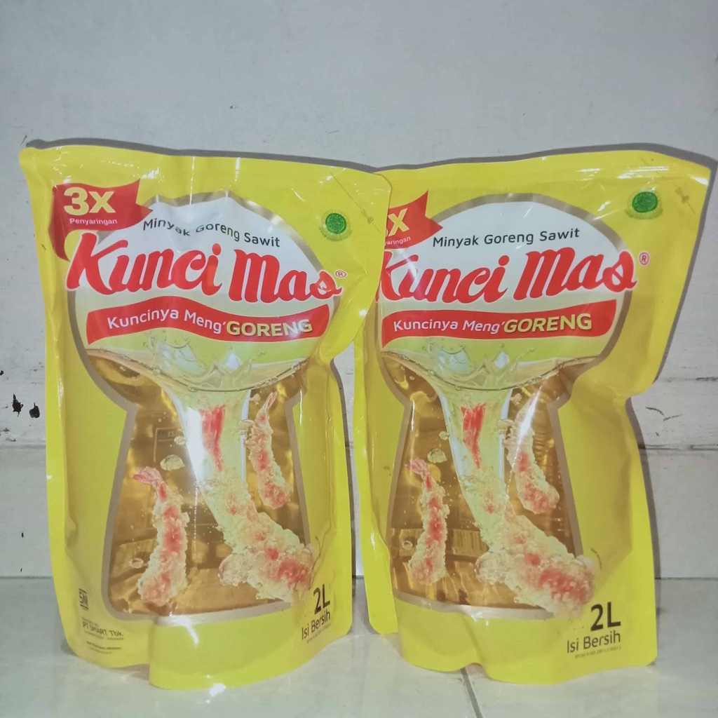 Minyak goreng Kunci Mas 2L dengan 3x penyaringan & mengandung vitamin A