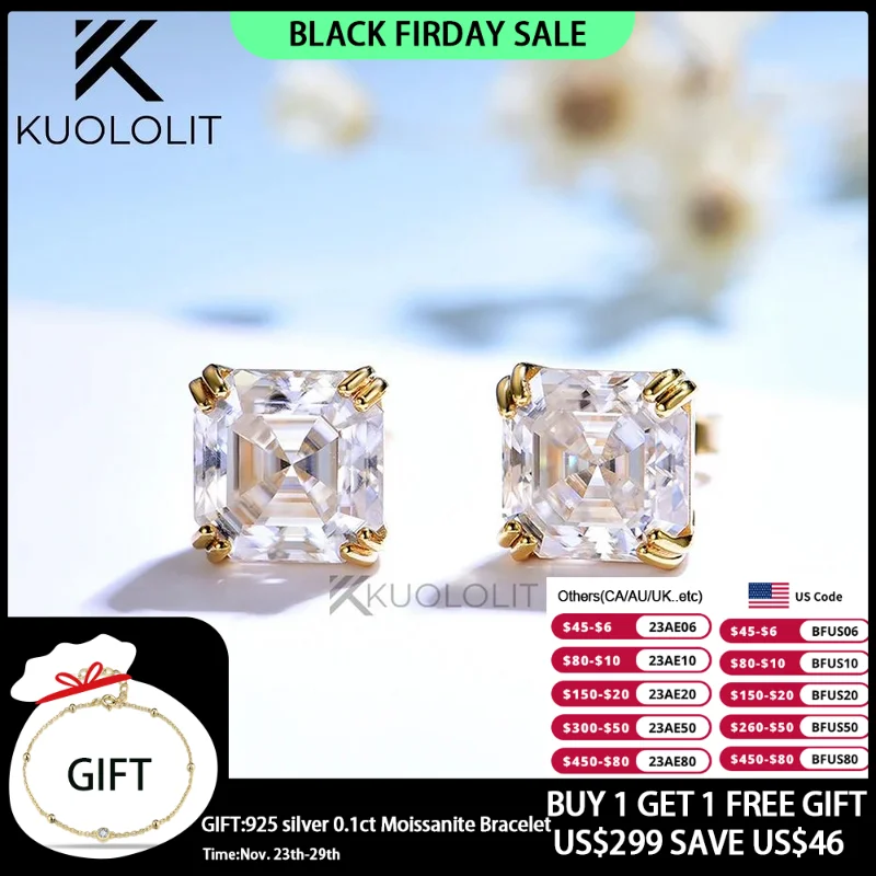 Kuololit огранка Ашер серьги с муассанитом для женщин однотонные 18K из 14-каратного золота с двойными зубцами Серьги для обручение вечерние Рождество