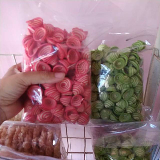 Kuping gajah ada rainbow, hijau, dan pink yg pasti ini renyah banget ya