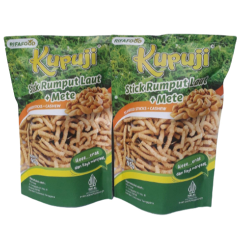 Stik Rumput Laut Metecamilan yang lezat dan sehat. Terbuat dari rumput lautyang dipadukan dengan mete yang gurih, produk menghadirkan kombinasi gurih dan gurih yang nikmat dalam setiap gigitan. Nikmati rasa yang lezat dan tekstur renyah dalam camilan istimewa ini, cocok untuk dinikmati kapan saja dan di mana saja.