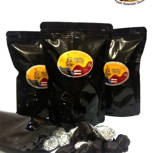 Kurma cokelat tanpa isi yg dibalut dengan cokelat premium