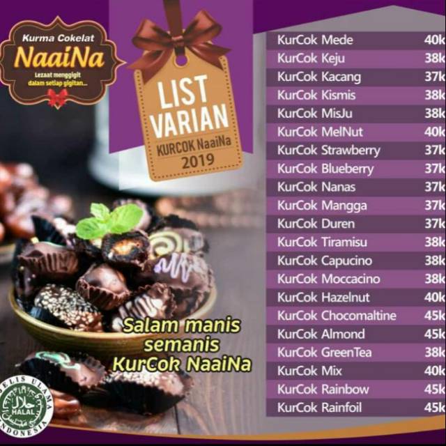 Coklat yang digunakan , coklat pilihan. Sehingga rasa coklat kurma Naaina sangat cocok untuk semua kalangan.