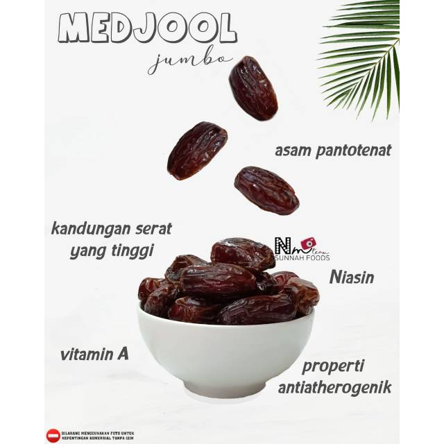 Medjool juga merupakan sumber vitamin, mineral dan kalium yang merupakan serat larut makanan. Tidak hanya baik untuk tubuh tetapi juga bisa mempertahankan rasa kenyang lebih lama.