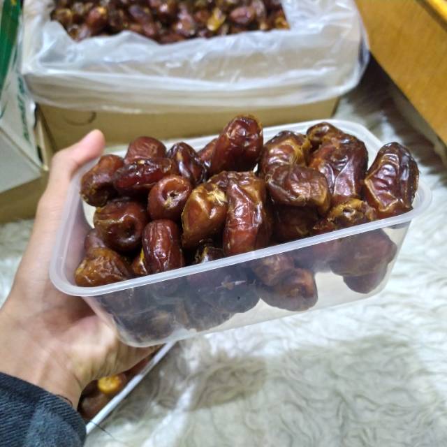 tahan suhu ruangan lebih lama dindalam kulkas tidak perlu masuk freezer sebab ini jenis kurma kering,