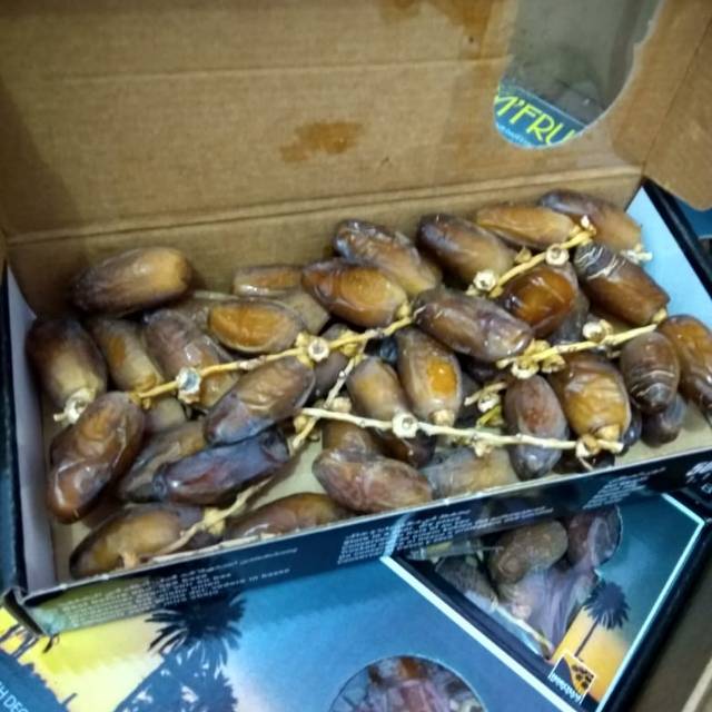 Kurma tangkai bentuk lonjong, legit, lembut di jamin rasanya juara.