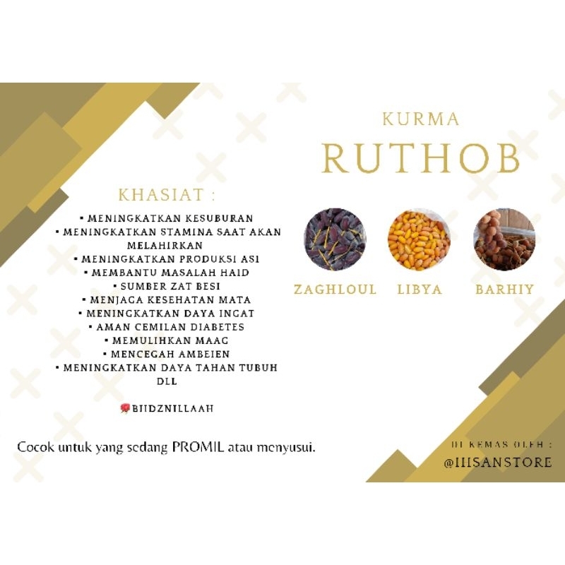 Ruthob Libya merupakan buah segar yang langsung dipetik dari pohon dan dipacking dari negara asalnya di Libya sampai ke Indonesia. Menggunakan Container Cold Storage dengan suhu minus 20 derajat celcius.