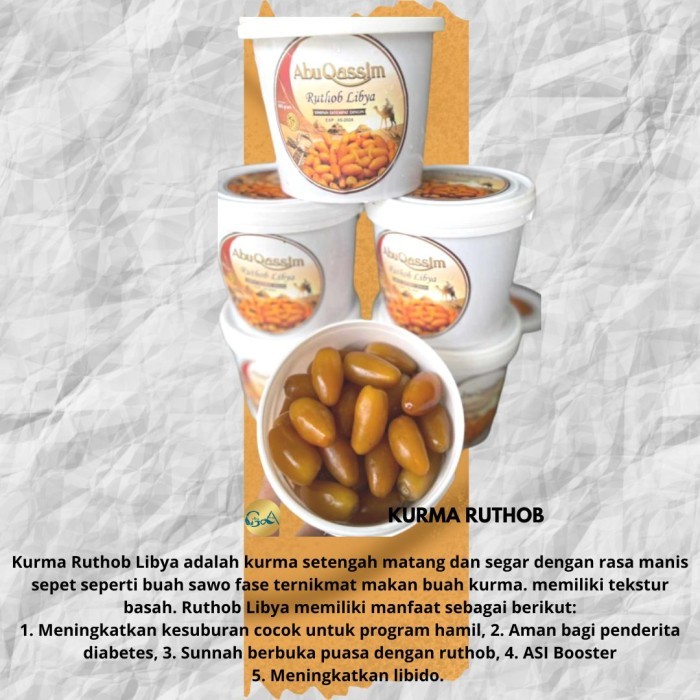 Ruthob Libya adalah kurma setengah matang dan segar dengan rasa manis sepet seperti buah sawo fase ternikmat makan buah kurma. memiliki tekstur basah.