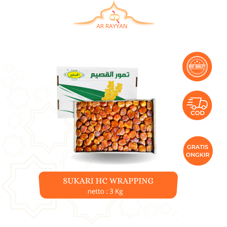Setiap buah kurma Sukari memiliki warna cokelat keemasan yang cantik dan ukuran yang relatif besar, membuatnya sangat cocok untuk dinikmati langsung sebagai camilan sehat, tambahan dalam berbagai resep kue dan masakan, atau sebagai hidangan istimewa saat berbuka puasa.