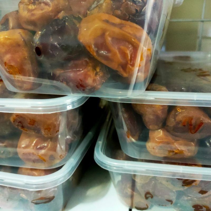 Kurma Sukari 500gram atau yang dikenal juga dengan sebutan kurma raja karena merupakan salah satu kurma yang paling disukai di kawasan Saudi Arabia dan Timur Tengah. Kurma sukari berukuran besar dan berwarna cokat terang dan ujungnya kuning ranum dengan daging buahnya sangat lembut sehingga lumer di mulut saat dimakan.