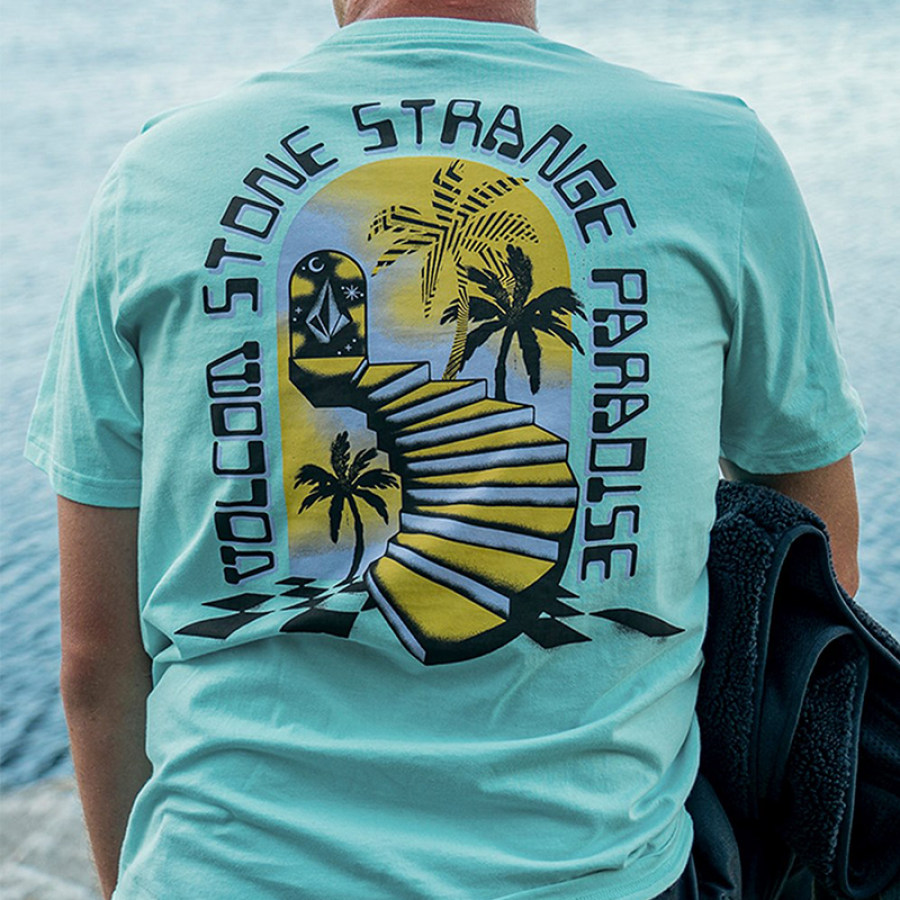 Kurzarm-T-Shirt Mit Surf-Print Für Herren In Rosenrot