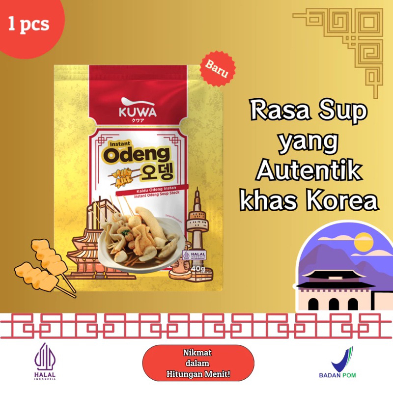 Kuwa Sup Instan Rasa Odeng memberikan keunggulan dalam proses penyajian yang cepat dan praktis tanpa repot. Dibuat menggunakan bumbu berkualitas tinggi untuk menghadirkan rasa Odeng yang sesungguhnya. Rasakan cita rasa Sup Odeng yang autentik khas Korea yang kaya dan gurih dalam setiap suapan cuma dari Kuwa Sup Instan Rasa Odeng tanpa perlu penambahan bumbu lainnya.