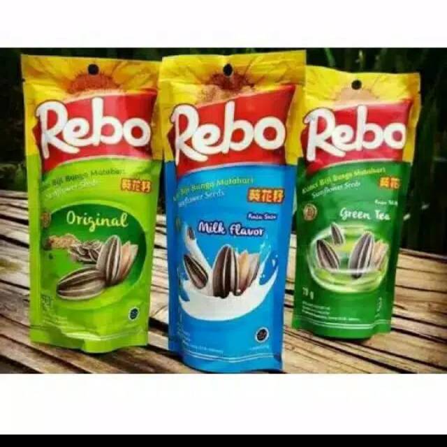 Kwaci Biji Bunga Matahari Rebo yang dikemas 1 pouch besar netto 150 gram.