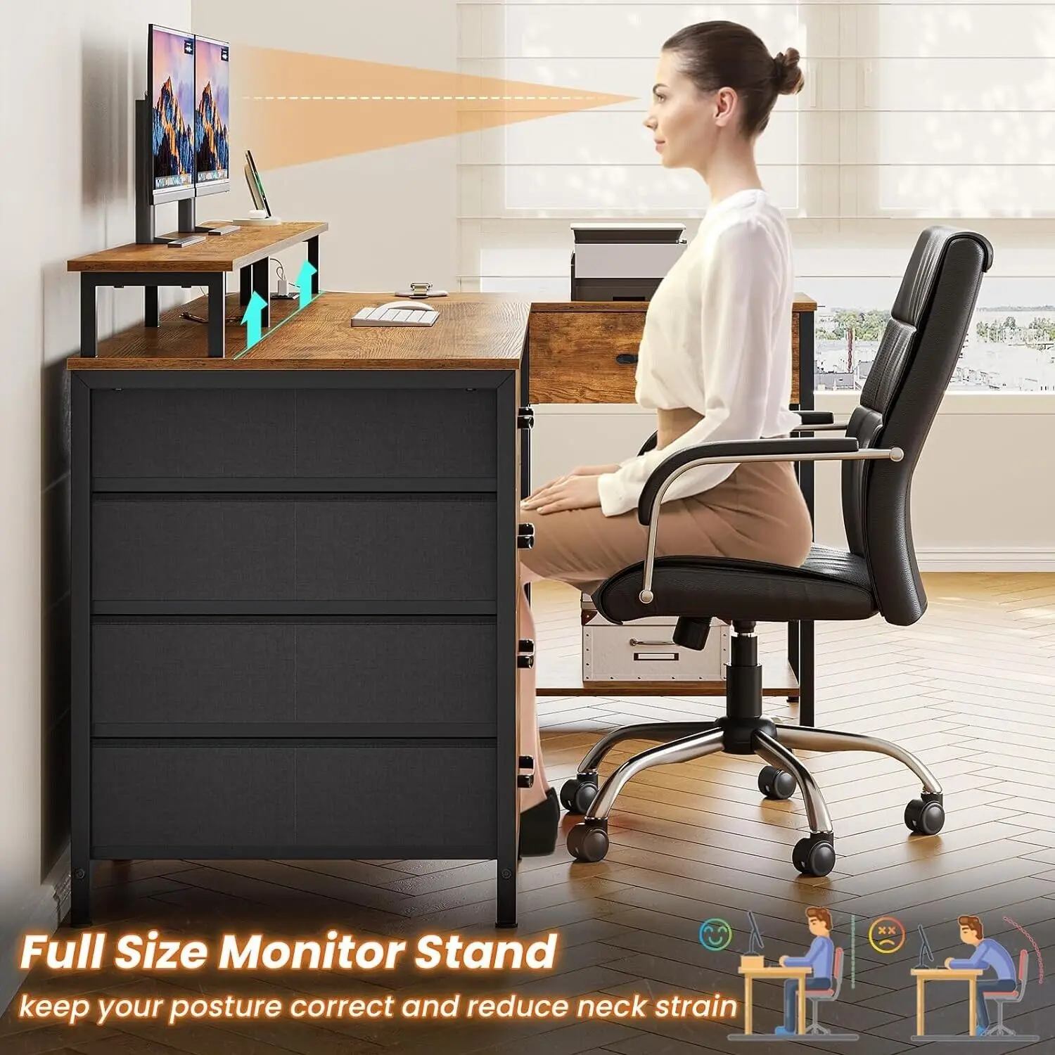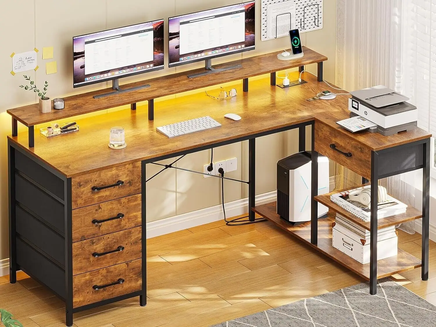 L-образный игровой стол с фонариками и розетками питания, стол для дома и офиса с 5 ящиками