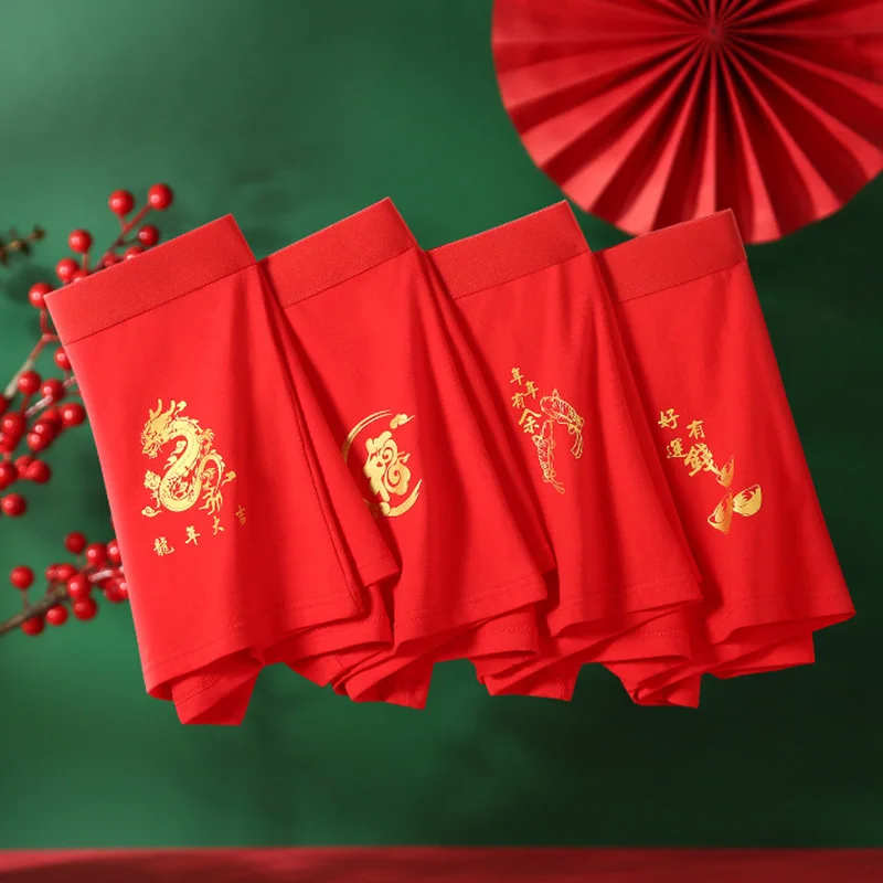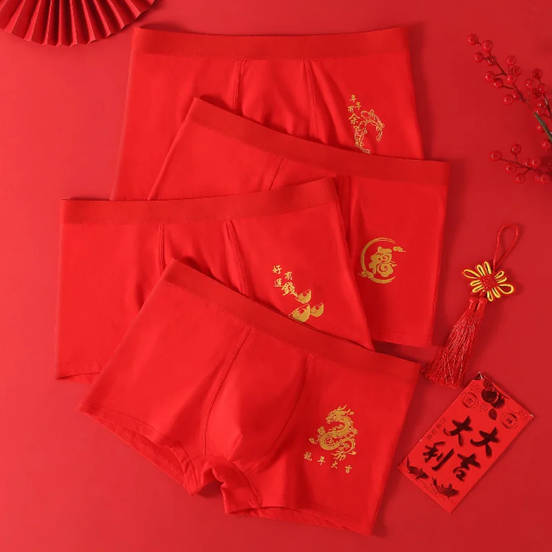 L-5XL 8 цветов эластичные мужские трусы Red Dragon Year Lucky мягкие дышащие хлопковые ежедневные брифы шорты