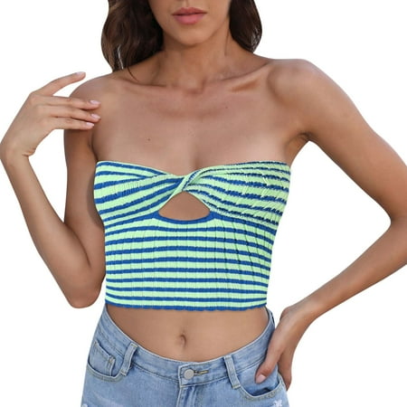 PhoneSoap Womens Large Bra Vest Knitted Elastic Vest Stripe Sleeveless Knitted Vest Top BU2 L