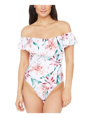 LA BLANCA Женский белый цельный купальник стрейч на бретелях с вырезом на спине и оборками