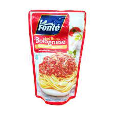 La Fonte Saos Pasta Bolognese adalah saus instan yang jadi pilihan favorit untuk dihidangkan dengan spaghetti, makaroni dan jenis pasta lainnya. Rasa saus ini sendiri adalah perpaduan rasa tomat, gurih, kaldu sapi, serta aneka bumbu dan rempah.