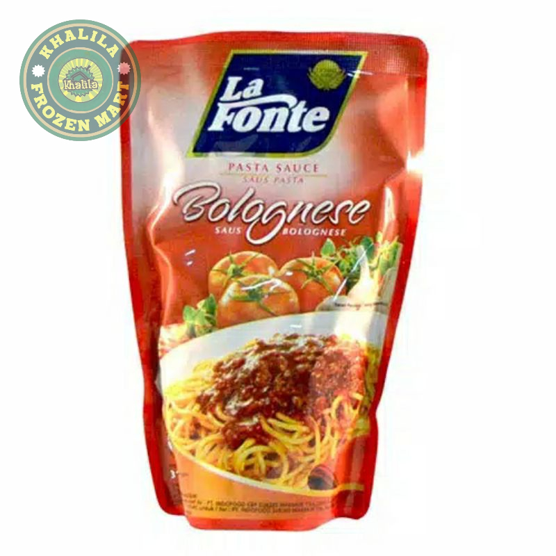 La Fonte Saos Pasta Bolognese adalah saus instan yang jadi pilihan favorit untuk dihidangkan dengan spaghetti dan jenis pasta lainnya. Rasa saus ini sendiri adalah perpaduan rasa tomat, gurih, kaldu sapi, serta aneka bumbu dan rempah. Saran Penyajian : Tuangkan La Fonte Saus Pasta Bolognese 315 gr ke spaghetti atau jenis pasta lain yang sudah matang, aduk rata hidangkan selagi hangat. Setiap 1 kemasan La Fonte Saus Pasta Bolognese untuk Spaghetti ukuran 225 gr bisa untuk 4-5 porsi. Sebagai topping, anda bisa juga menambahkan daging cincang, jamur, ayam, bakso, jamur, dsb.