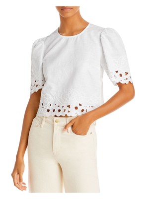 LA VIE Женский белый топ с круглым вырезом и круглым вырезом на спине с люверсами и рукавами до локтя
