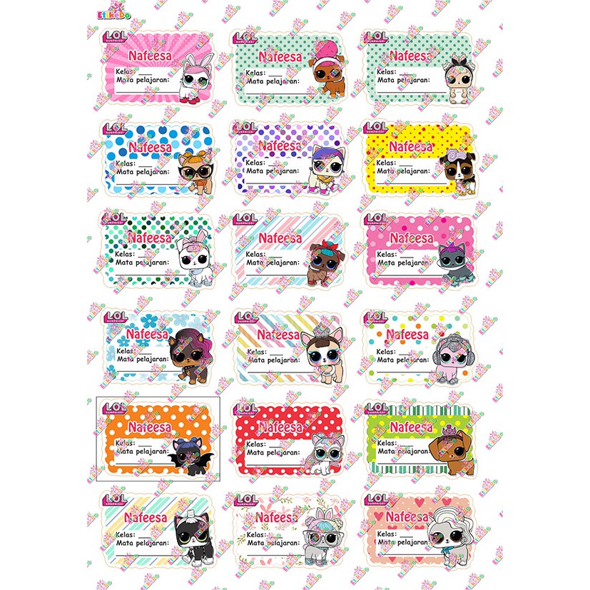 - Sticker label nama Lol anti air, anti sobek, dan tidak luntur.