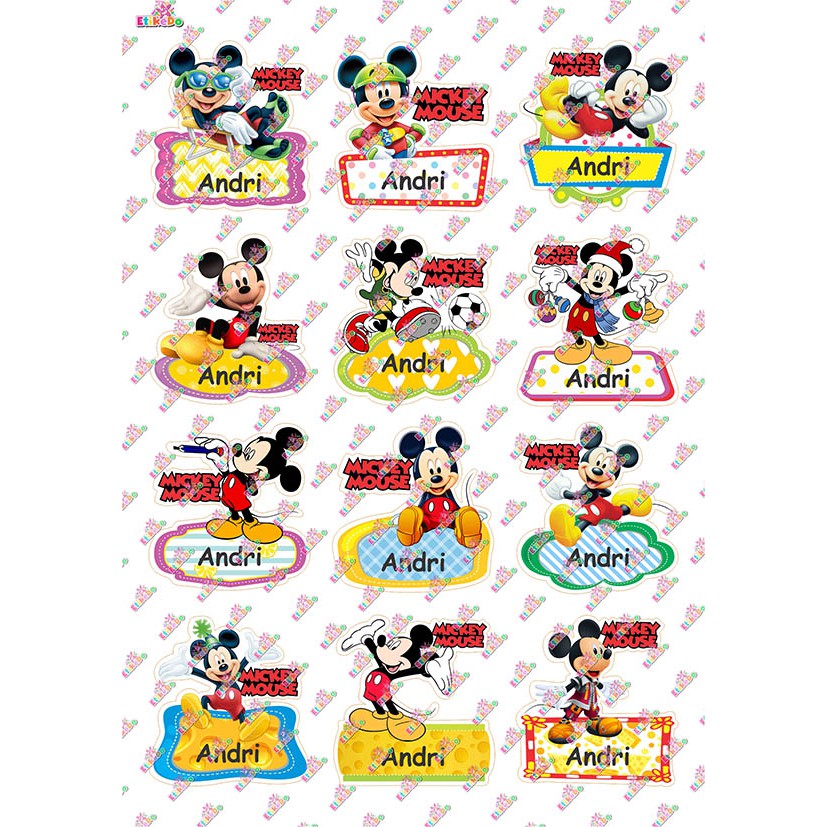 - Sticker label nama Mickey Mouse anti air, anti sobek, dan tidak luntur.