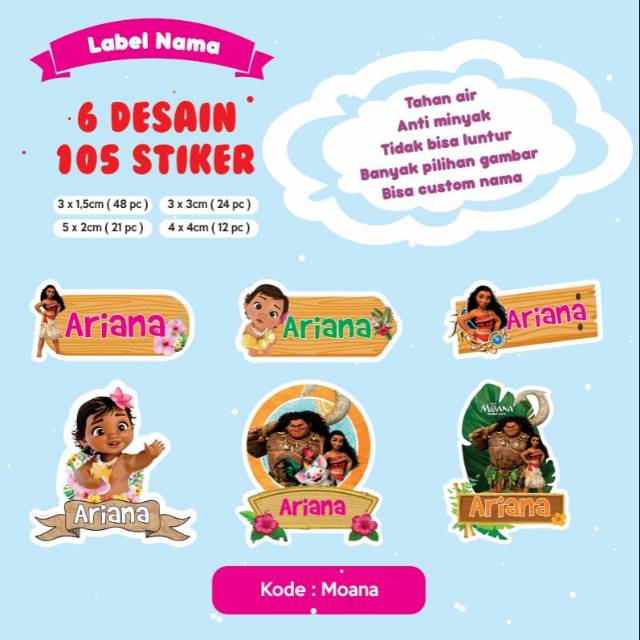 Tersedia 70 designs saat ini #labelnama#stickernamawaterproof#stickernamamurah #sticketcusto#moana