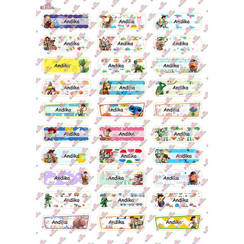 - Sticker label nama Toy Story anti air, anti sobek, dan tidak luntur.