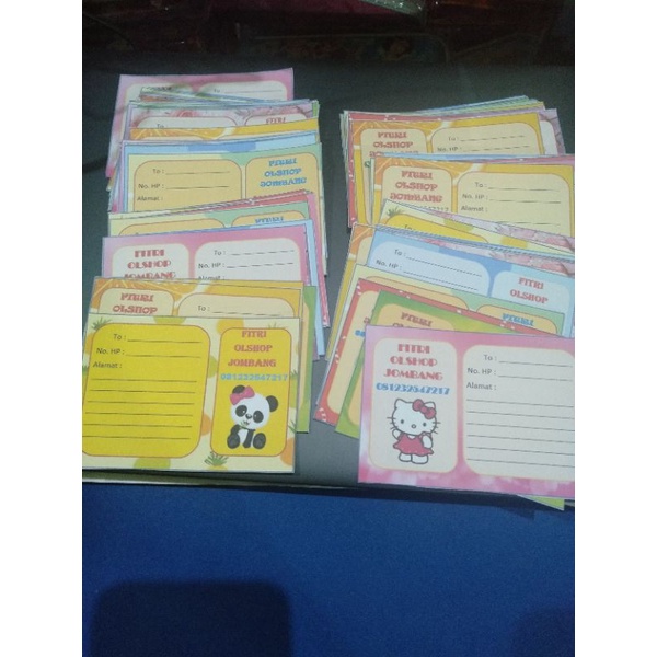 label pengiriman olshop bhn kertas HVS dapat 100 lembar ukuran 7x10