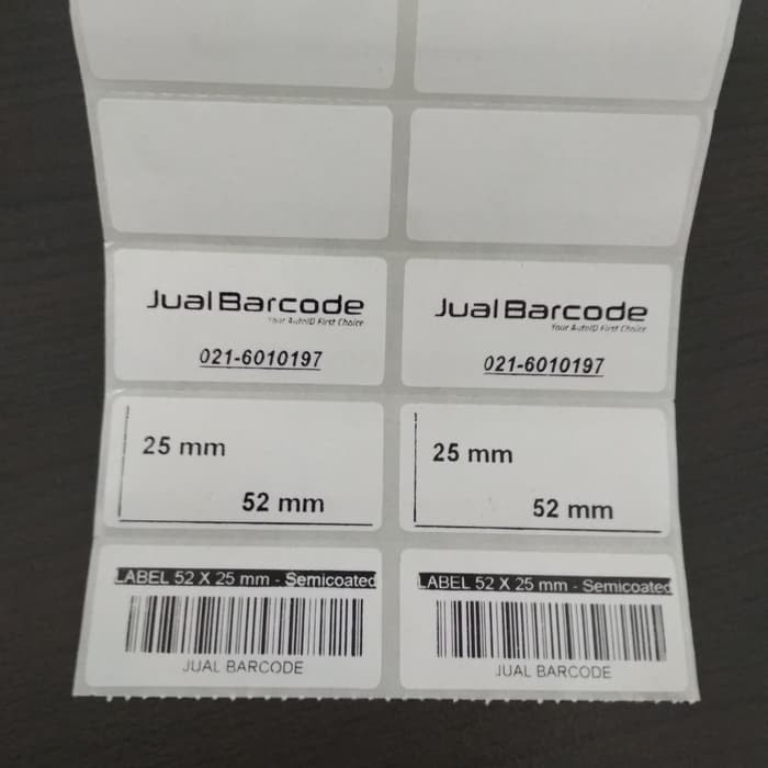 Deskripsi LABEL STICKER BARCODE 52mm X 25mm ( 2 LINE ) SEMICOATED isi 5000 pcs