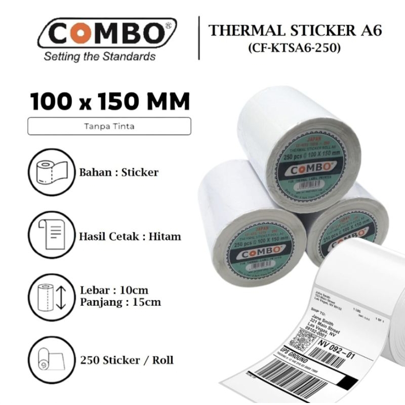 LABEL THERMAL COMBO STIKER A6 100mmx150mm 250 ROL (PCS)