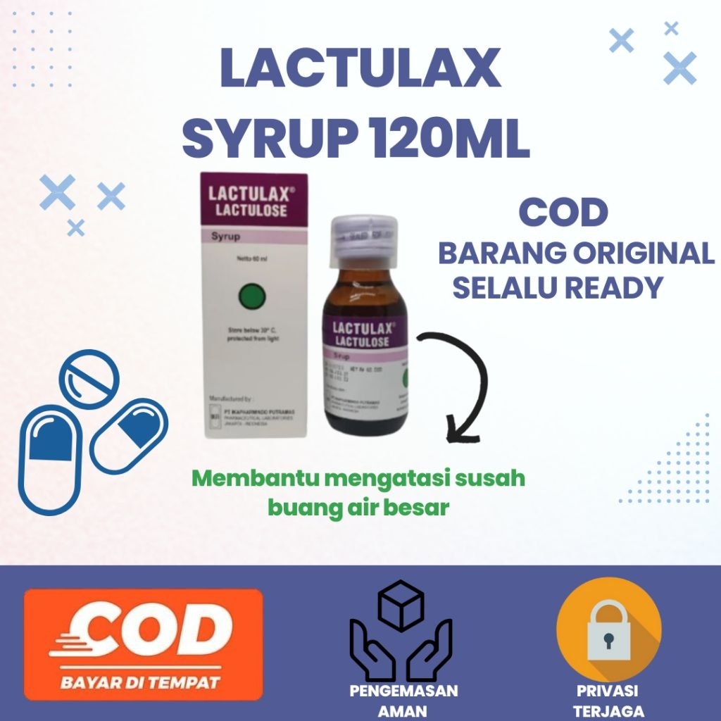 LACTULAX SYRUP 120ML kegunaan: 1. Membantu elancarkan buang air besar Aturan pemakaian : SESUDAH MAKAN 1. Dewasa: 15-45 Ml per hari. 2. Anak usia