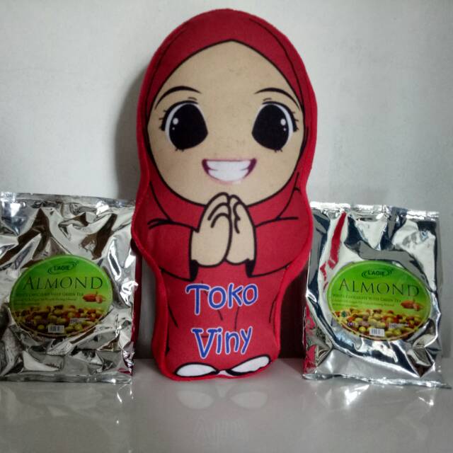 Cokelat putih Lagie rasa teh hijau dengan isi kacang Almond.