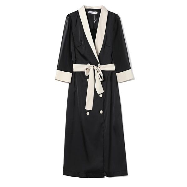 casual dresses notched fashion women double breasted 2021 summer female loose elegant three quarter mid dress vestido s620, Black;gray