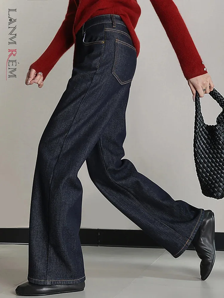 LANMREM 2024 Весенние Новые плисовые джинсы эластичные узкие джинсовые брюки с карманами с высокой талией Женская повседневная одежда 2DA335405