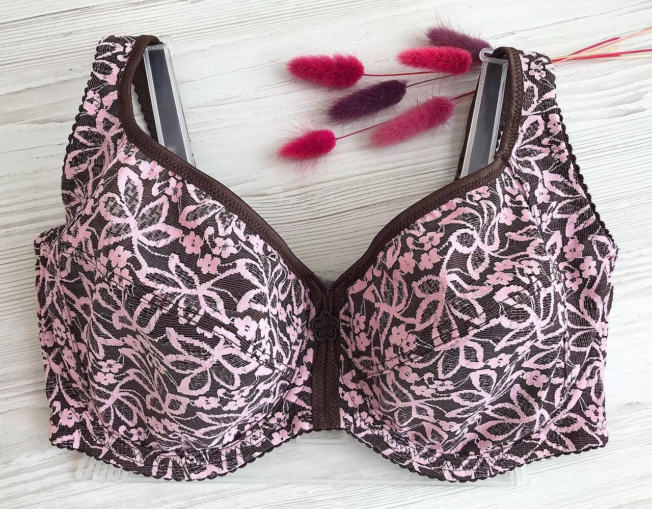 Бюстгальтер без поролона на хлопковой основе в шоколадно-розовом цвете с цветочным принтом фирмы LANNY MODE
