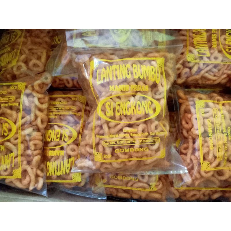 *LANTHING BUMBU RASA PEDAS MANIS SI ENGKONG* terbuat dari singkong pilihan yang diolah menjadi makanan ringan, cemilan khas gombong, cocok buat nemenin makanan berkuah hangat, isi kemasan 200gr buruan diorder!!