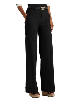LAUREN RALPH LAUREN Женские черные рабочие брюки с широкими штанинами на пуговицах, Черный, 200851798001