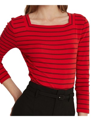 LAUREN RALPH LAUREN Женский красный полосатый топ с квадратным вырезом и рукавами 3/4