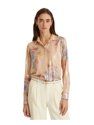 LAUREN RALPH LAUREN Женский розовый топ с круглым низом и манжетами на пуговицах размера