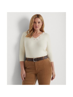LAUREN RALPH LAUREN Женский топ цвета слоновой кости с рукавом 3/4 и V-образным вырезом для работы плюс, Цвет слоновой кости