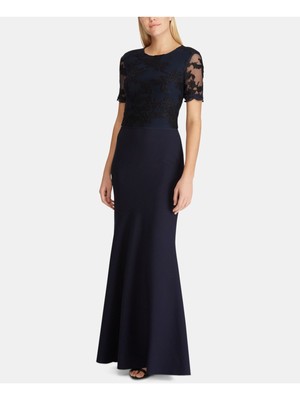 LAUREN RALPH LAUREN Женское темно-синее вечернее платье-русалка в пол с короткими рукавами, Navy