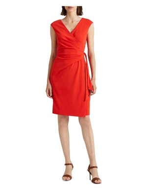 LAUREN RALPH LAUREN Красное женское платье без рукавов с завязками и поясом на подкладке с искусственным запахом, Красный