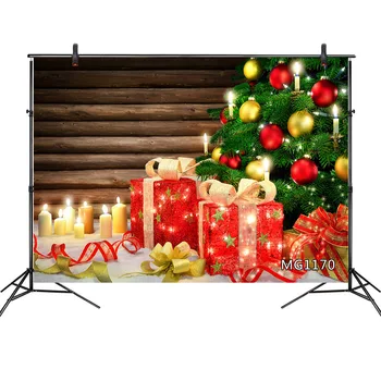 LB Christmas Scene Backdrop Rustic Wooden Photo Background Christmas Tree Photography Backdrops Candle Gift Box Photo Studio