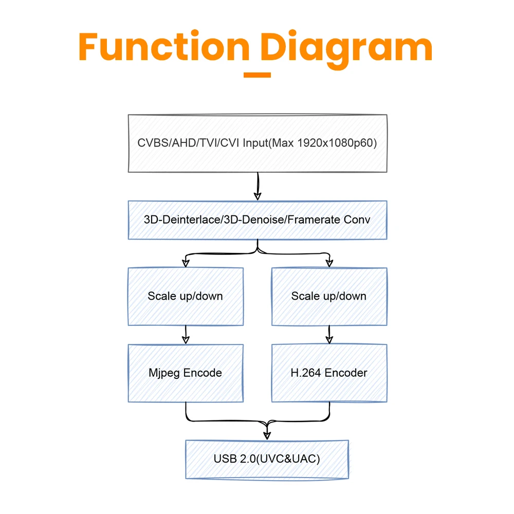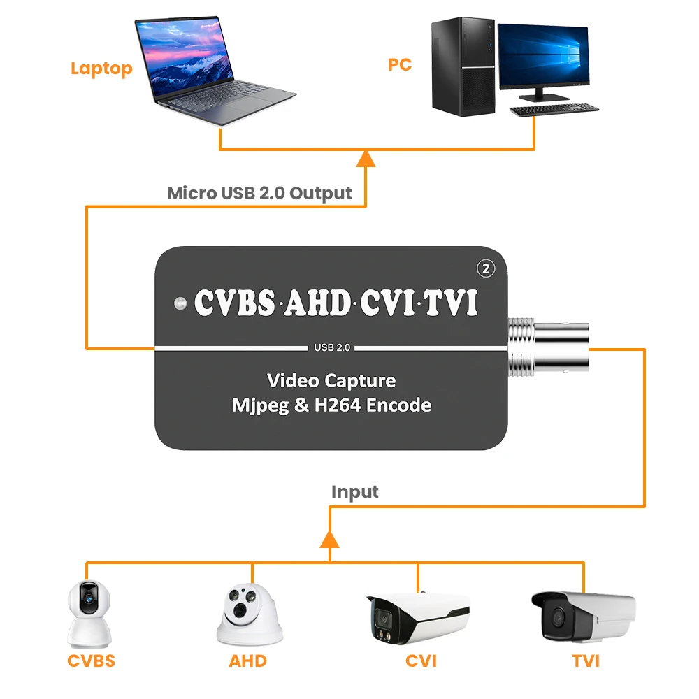 LCC261 CVBS AHD CVI TVI к USB карта захвата H.264 & MJPEG, два датчика, AHD преобразователь 1080P CVBS2UVC