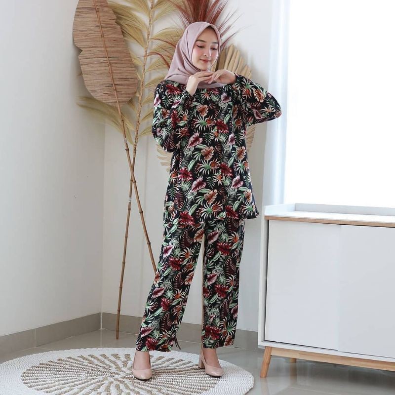 Bahan rayon uniqlo,yg bagusan ya,ga tebal tapi bahan ga nerawang,ademm banget,aluss jamin,ful kancing(atasan),tangan karet,celananya pinggang ful karet